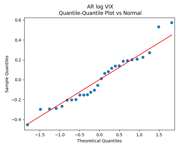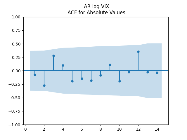 show independent identically distributed. See below. Thus the log volatility is indeed modeled by the autoregression of order 1, statistically significantly mean-reverting, with Gaussian innovations. This is similar to Angel Piotrowski’s research.